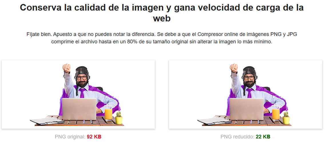 Para reducir el tamaño de las imágenes sin descargar ninguna aplicación (vía online), haga clic en la imagen:
